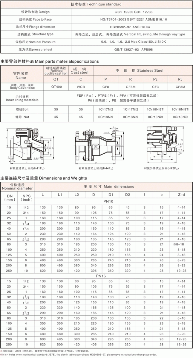 襯氟升降式止回閥H42F46